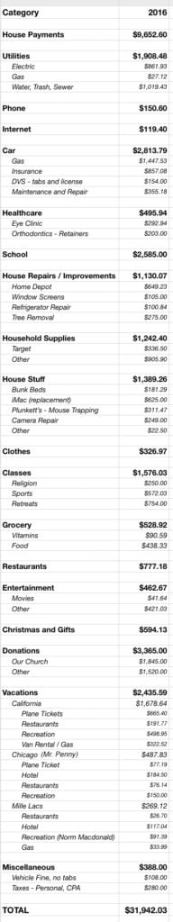 First, let’s take a look at how we spent our money in 2016, and we’ll get into it: