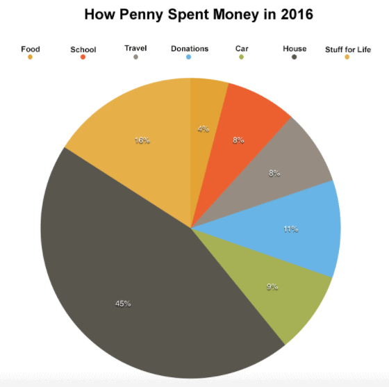 Let’s put together some fun charts on this. Here’s a look at what we spent our money on in 2016: