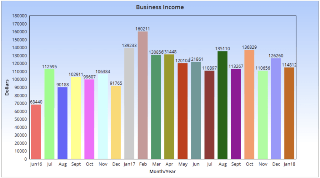 How was business income in January of 2018?