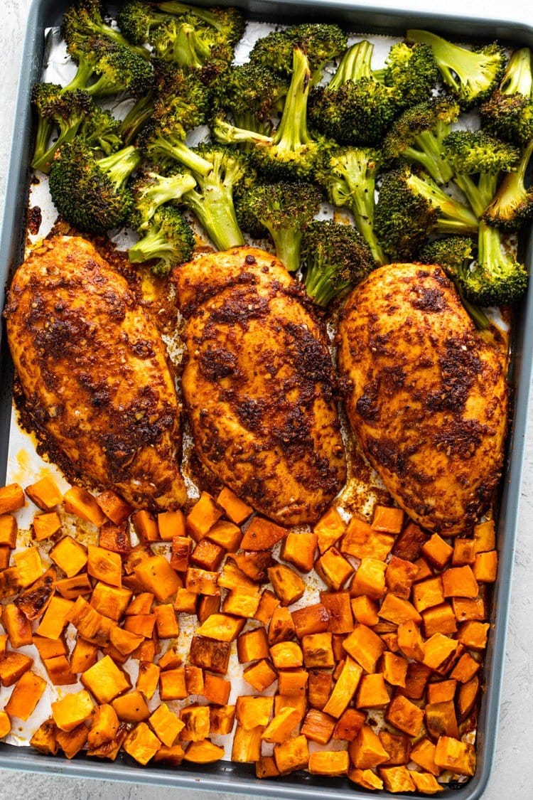 3. Sheet Pan Roasted Chicken, Sweet Potatoes, And Broccoli