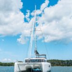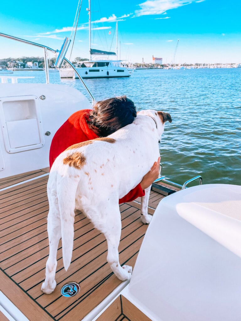 It was a 1,300 nautical mile sail and took us 9 days. It was our longest passage, and it was just me, Wes, and our two dogs. Our highest speed was 14.5 knots, and we hit 12 and 13 quite often. We caught fish, saw a submarine, dealt with Tropical Storm Bertha, and more. Our dogs did amazingly well on the passage, and it was a wonderful time.