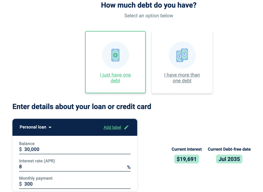 - Type in your debt information, such as how you owe, your interest rate, and your monthly payment amount.