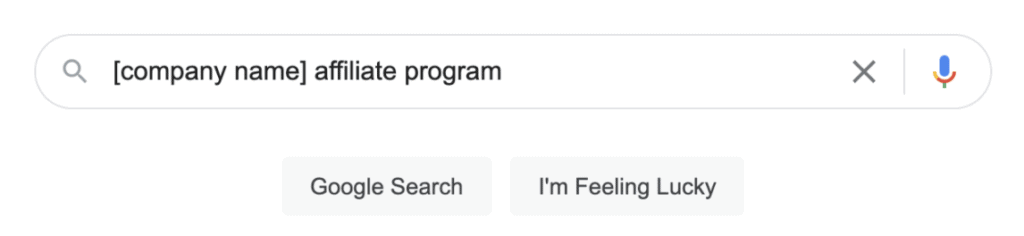 Now that you’ve chosen which products to promote, it’s time to become an affiliate! You can usually find a company’s affiliate program with some simple online research. If you don’t see instructions on their site, try a quick Google search like this: