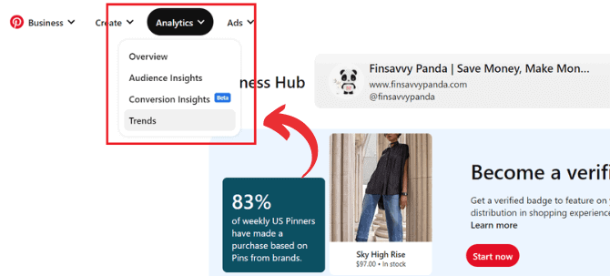 To get started on Pinterest Trends, go to “Trends” under the “Analytics” tab.