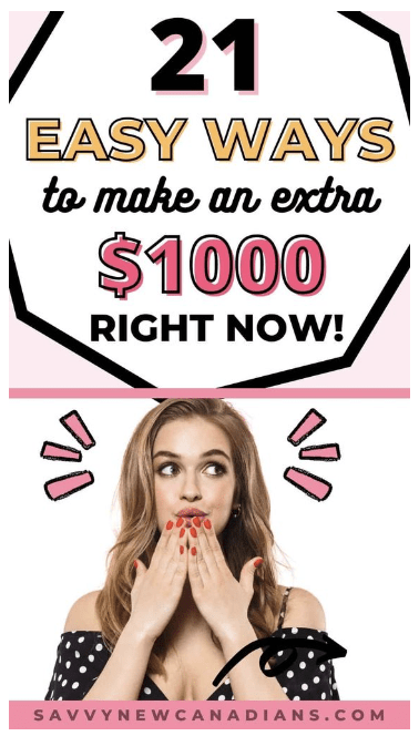 You can also see one of my Pin templates used by my friend, Enoch from Savvy New Canadians. He made quick tweaks to the general pre-made template to target his personal finance audience and named his title “21 Easy Ways To Make An Extra $1,000 Right Now”.