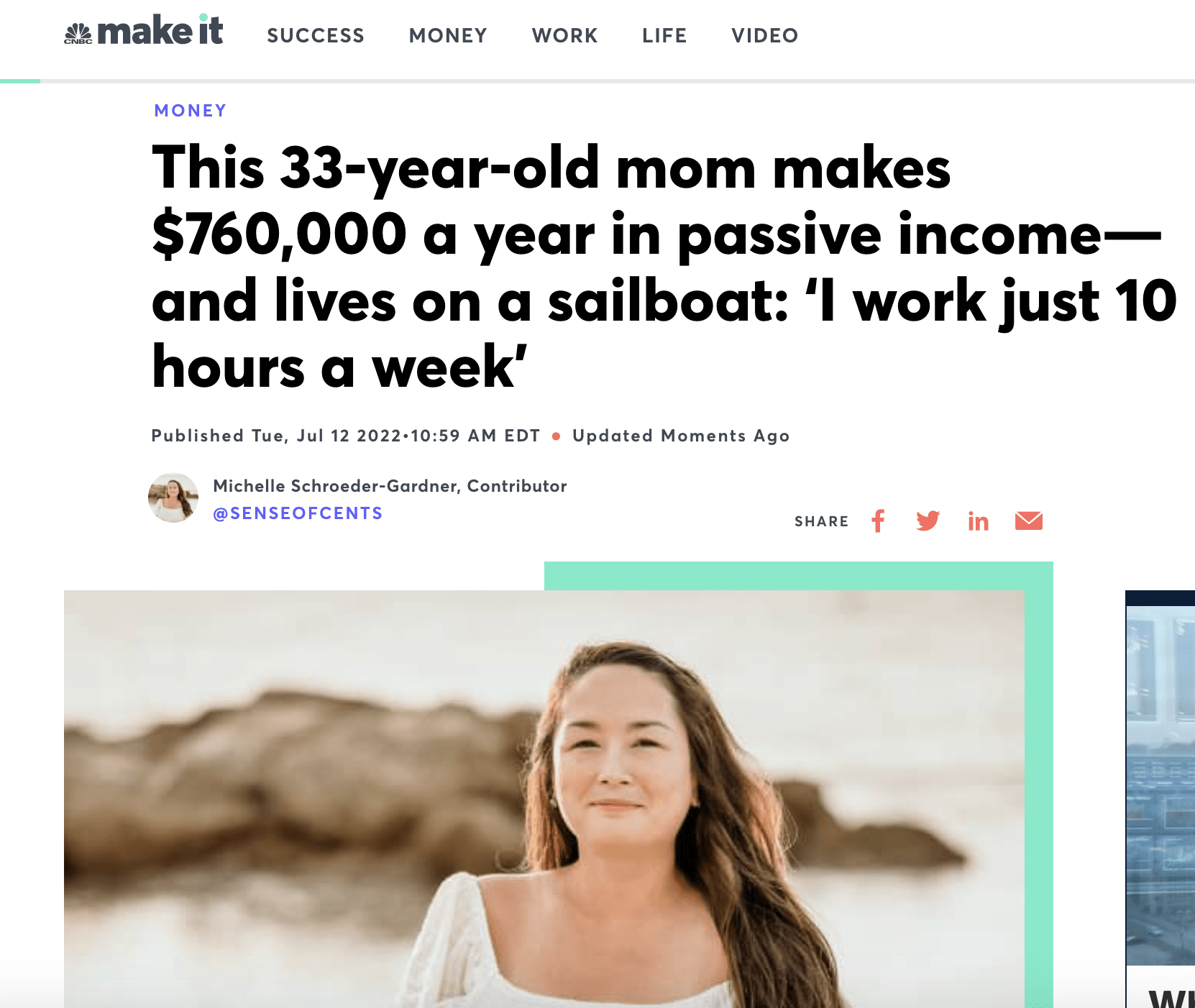 You can read the CNBC article here – This 33-year-old mom makes $760,000 a year in passive income—and lives on a sailboat: ‘I work just 10 hours a week’
