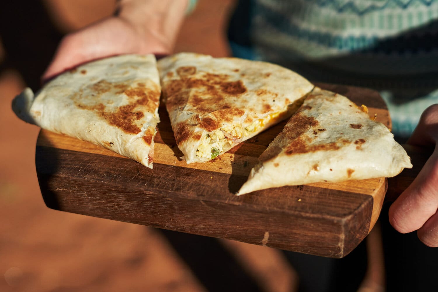 This list of camping breakfast recipes even includes the classic biscuits and gravy. Everything is cooked in one skillet, so you don’t have to pack multiple pans. That will really help you save on space.